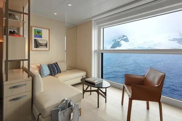 Nordic Junior Suites include our Nordic Balcony and more storage and seating than our Nordic Balcony staterooms, plus an expanded bathroom with extended shower and double sinks. Explorer Suites are 80% larger than junior suites, with two separate rooms, a Nordic Balcony and private veranda, spacious bathroom and private access to our Explorer Suites Garden. All suites include welcome champagne, a fully stocked mini-bar, complimentary laundry, priority restaurant reservations and all the amenities of our regular Nordic Balcony staterooms.